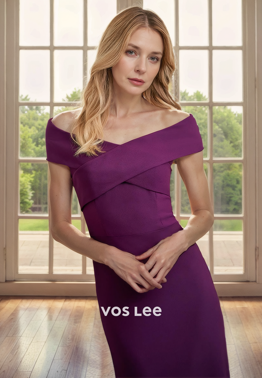 Sheath/Column Off Shoulder Floor-Length Satin Mother of the Bride Dress/Cocktail Dress