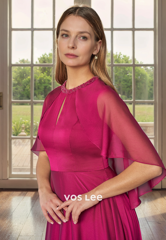 A-Line Round Bat Sleeves Floor-Length Chiffon Mother of the Bride Dress/Cocktail Dress