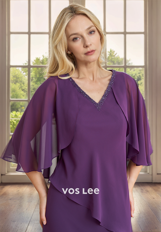 Sheath/Column V-Neck Bat Sleeves Floor-Length Chiffon Mother of the Bride Dress