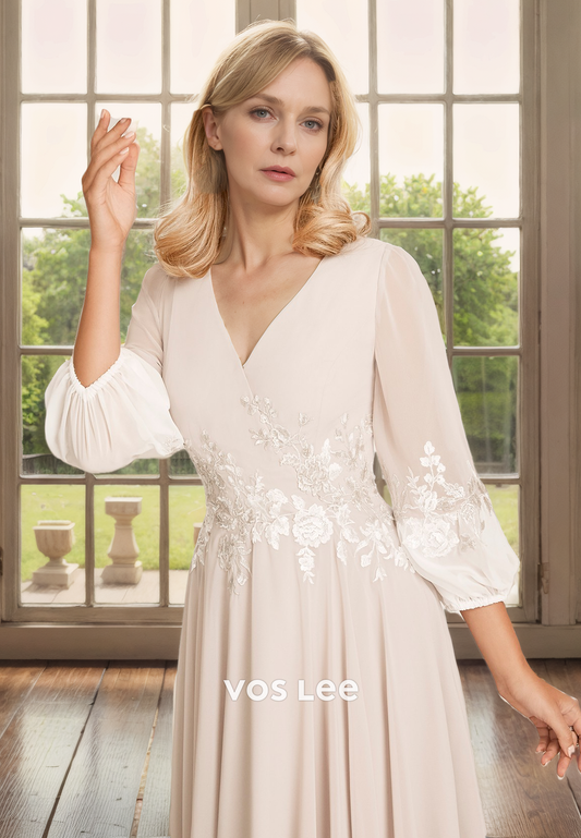 A-Line V-Neck Long Sleeves Chiffon Mother of the Bride Dress