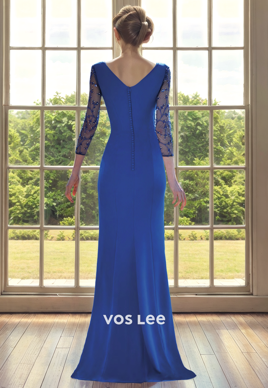Trumpet/Mermaid V-Neck Sweep Train Long Sleeves Satin Mother of the Bride Dress/Cocktail Dress