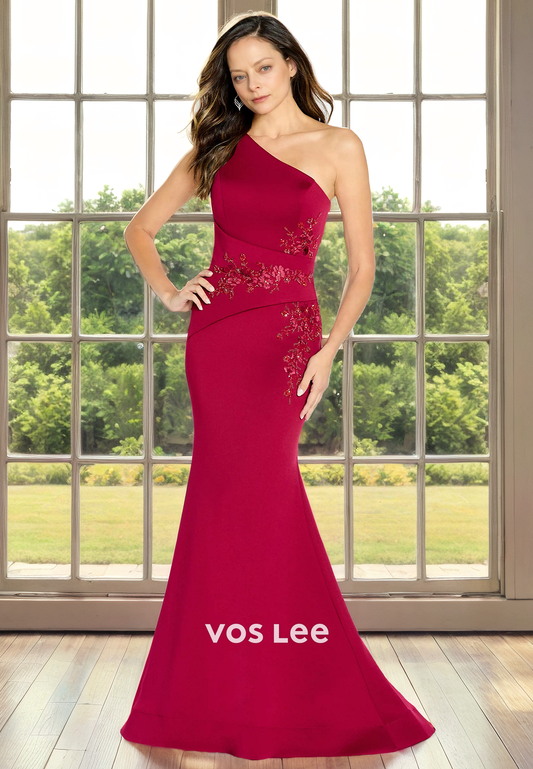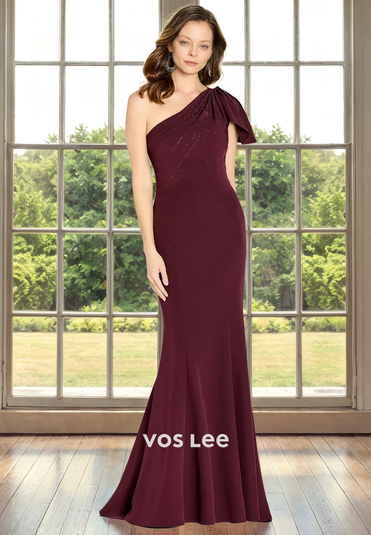 Trumpet/Meraid One Shoulder Sweep Train Satin Mother of the Bride Dress/Cocktail Dress with Bow