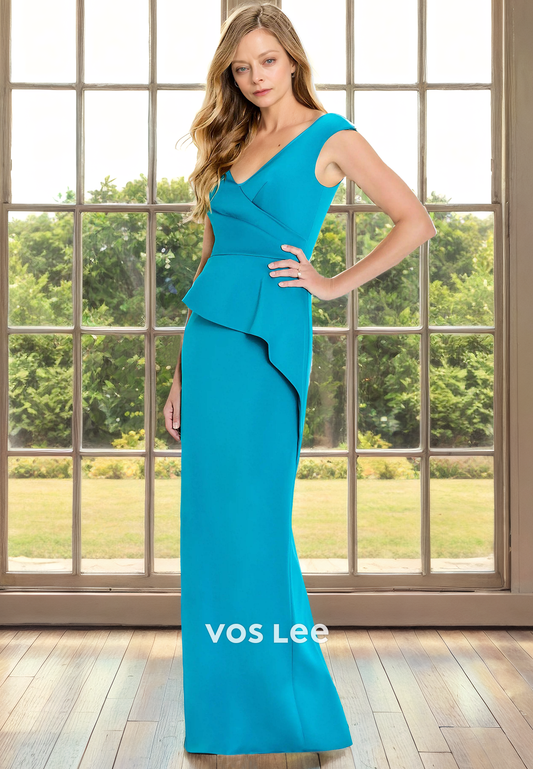 Sheath/Column V-Neck Off Shoulder Floor-Length Satin Mother of the Bride Dress/Cocktail Dress