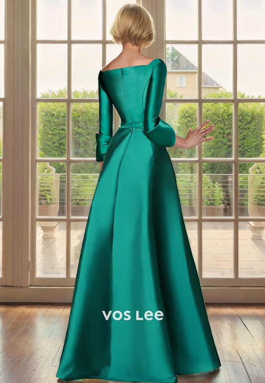 A-Line Square Long Sleeves Floor-Length Mother of the bride Dress with Bow
