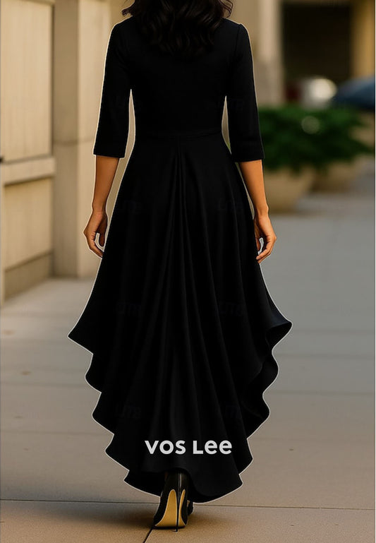 Classic A-Line V-Neck Long Sleeves High Low Evening Formal Dress