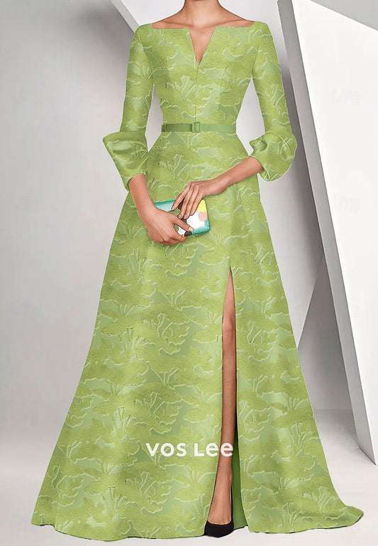 A-Line Long Sleeves Formal Dress Split eveming Dress