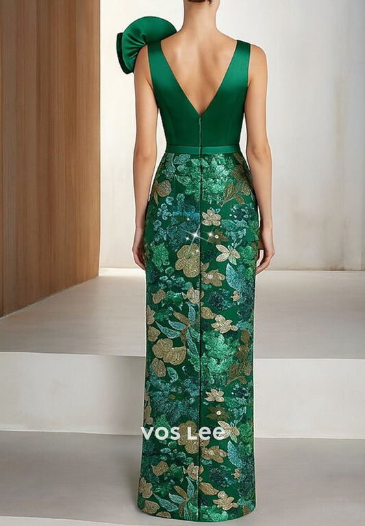 Luxury V-Neck Green Beaing Flowers With Shoulder Flowers Evening Dress
