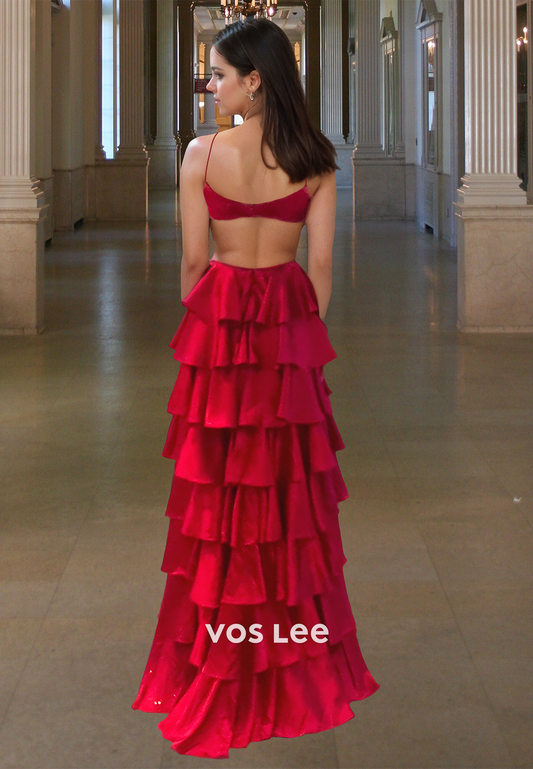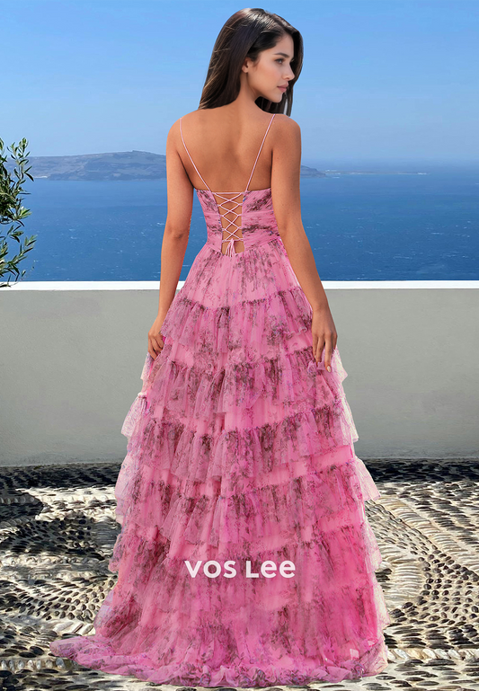 Sexy Tiered Sheath Tulle Spaghetti Straps Evening Dress Quinceanera Prom Gown