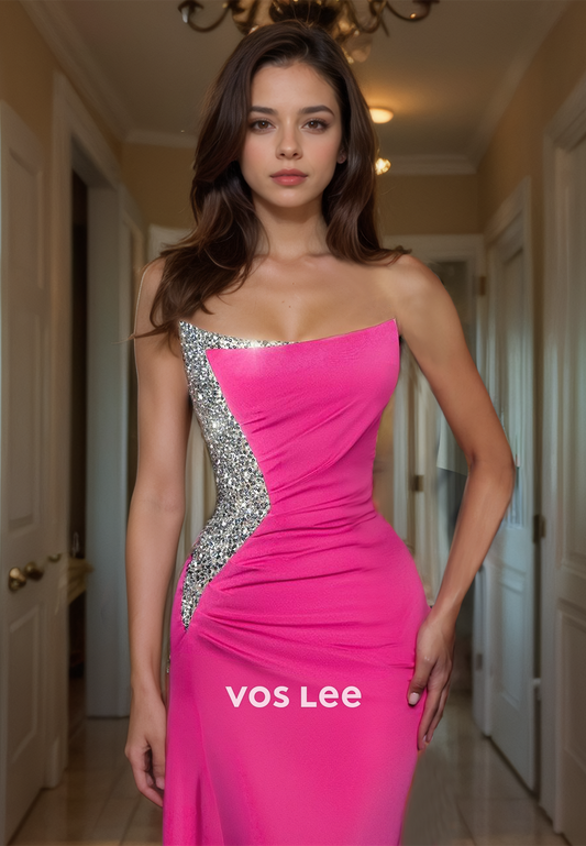 Sparkly Fuchsia Sweetheart Cocktail Party Dress Strapless Corset Back Floor Length Sequined Prom Dresses