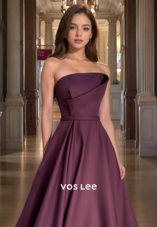 Unique Floor Length Strapless A-Line Prom Dress Chiffon Zipper Back Cocktail Dresses