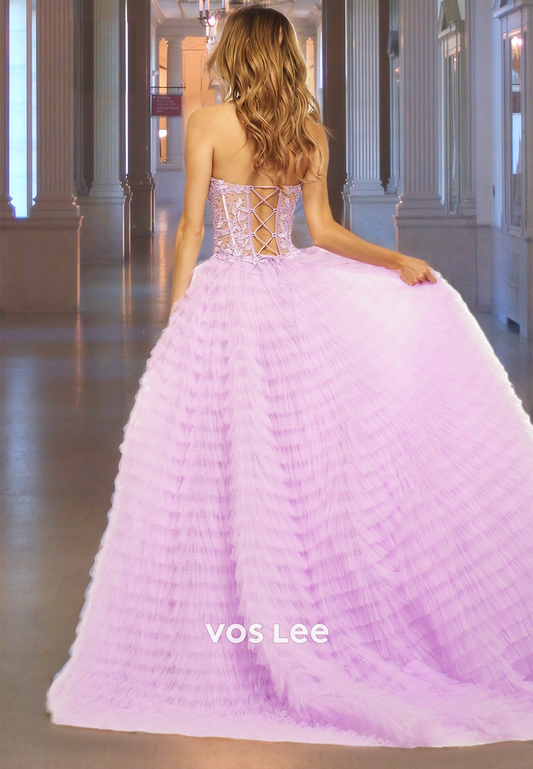 Gorgeous A-Line Sweetheart Tulle Formal Quinceanera Dresses Lace Up Tiered Floor Length Evening Party Gown