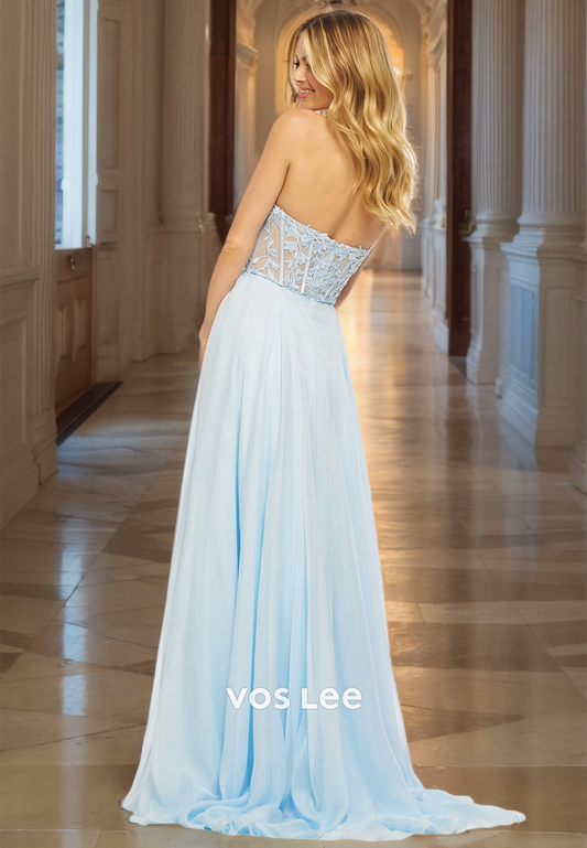 Elegant Sweetheart Lace Floor Length Prom Dress Strapless A-Line Formal Cocktail Dress with High Split