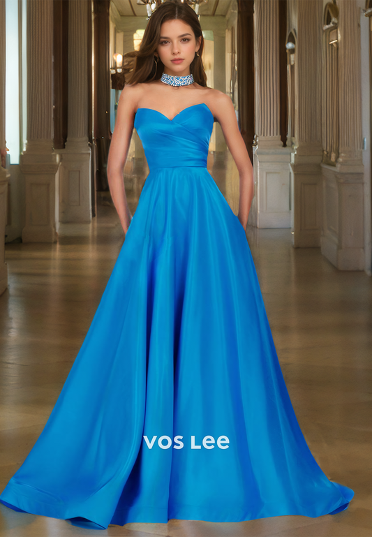 Graceful Satin Sweetheart Draped A-Line Prom Dress Strapless Floor Length Party Dresses