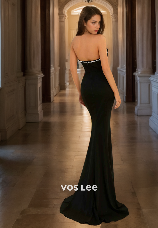 Black Sweetheart Strapless Formal Occasion Party Dress Mermaid Zipper Back Prom Gown
