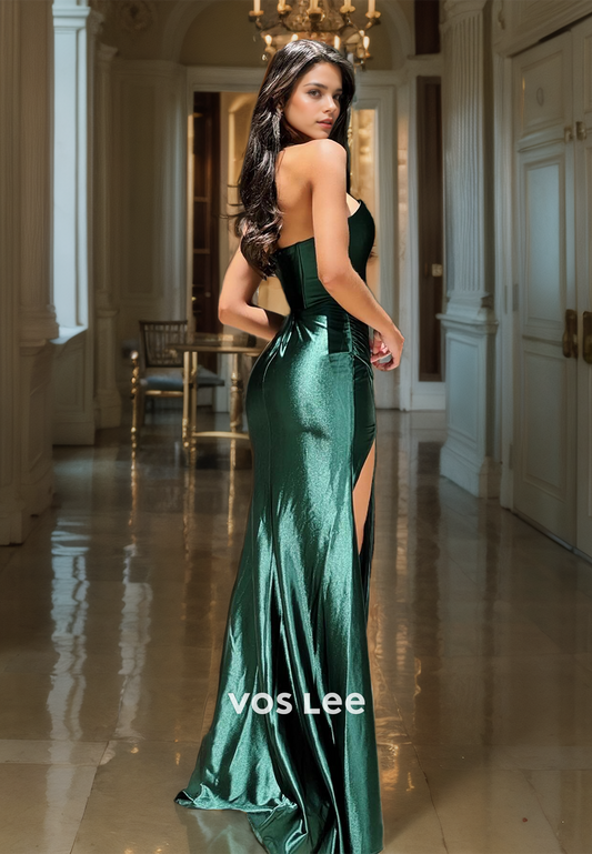 Elegant Mermaid Sweetheart Satin Prom Dress Strapless Pleated Floor Length Quinceanera Dresses