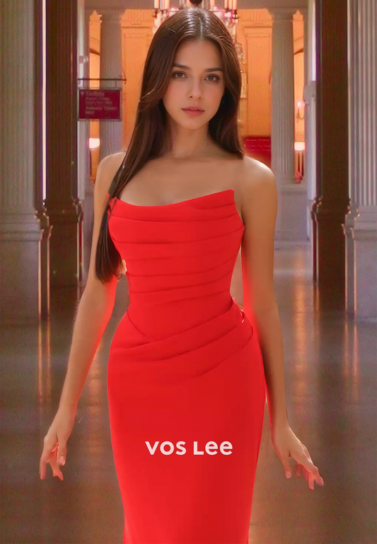Classy Scoop Red Scoop Prom Gown Floor Length Strapless Club Night Party Dress