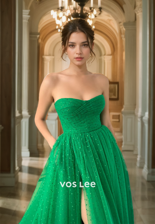 A-Line Tulle Polka Dot Green Quinceanera Dress Sweetheart Strapless Elegant Prom Dresses