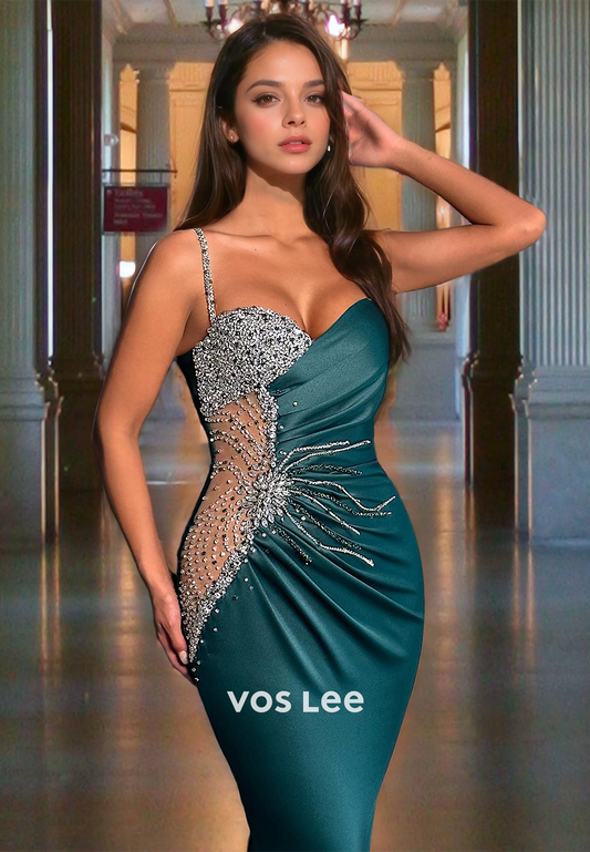 Stunning Sweetheart Satin Pleated Prom Dress Straps Elegant Formal Cocktail Dresses