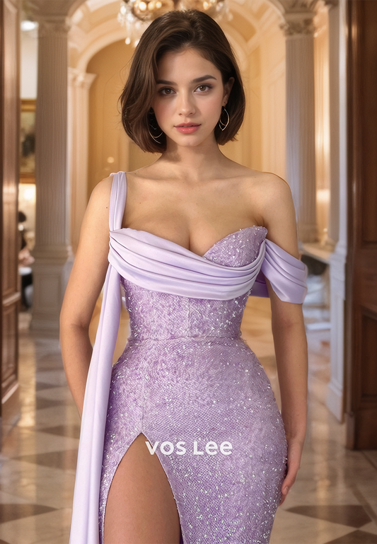 Lilac Mermaid Sweetheart Sequins Quinceanera Dress with Slit Off-Shoulder Sparkly Party Dresses