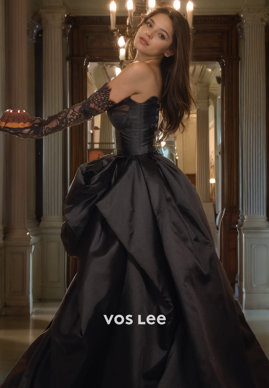 Elegant Black Strapless Side Slit Prom Dress Satin Floor Length Quinceanera Dress
