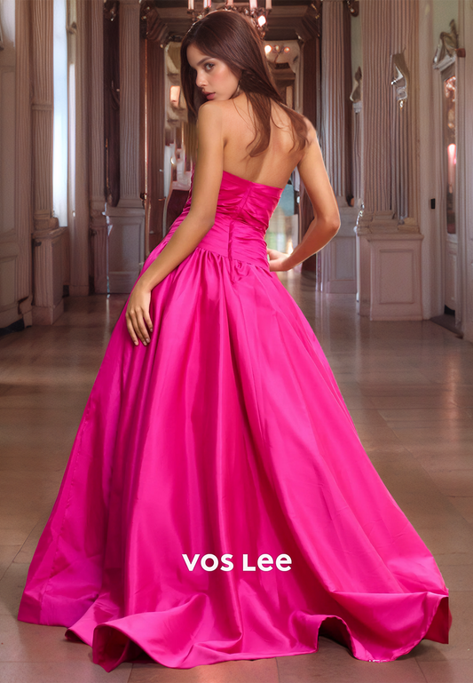 A-Line Sweetheart Pleated Court Train Prom Dress with High Slit