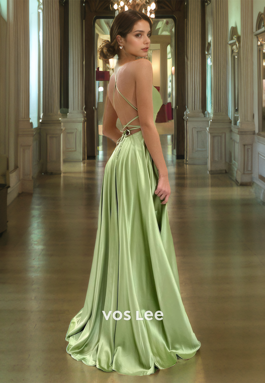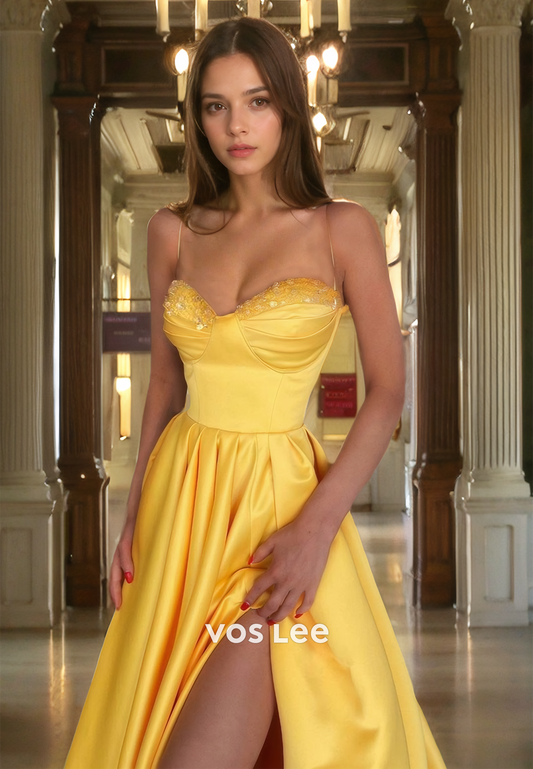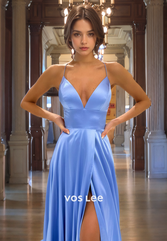 Charming A-Line Spaghetti Straps Floor-length Prom Dress with High Slit