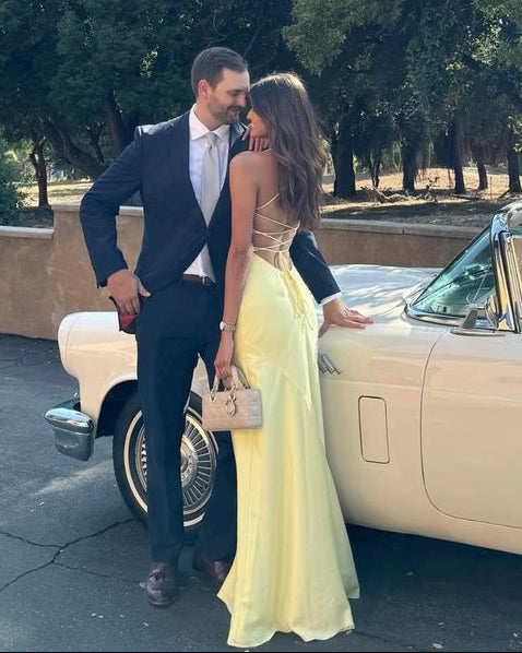 Yellow Straps Prom Dresses, Evening Dress Floor Length Party Gowns
