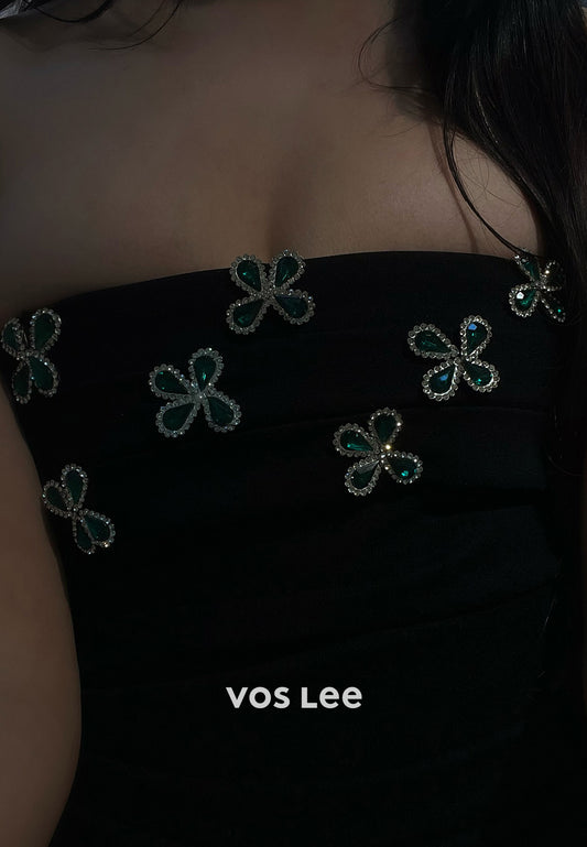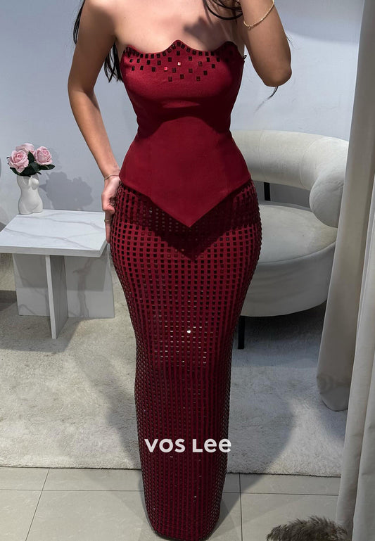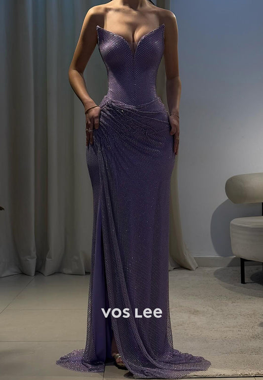 Strapless Rhinestone Beading Embellished Floor-Length Mermaid Prom Dresses with Side Split