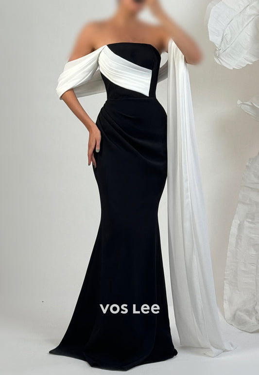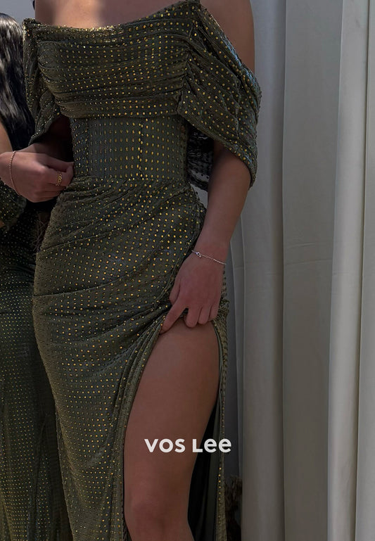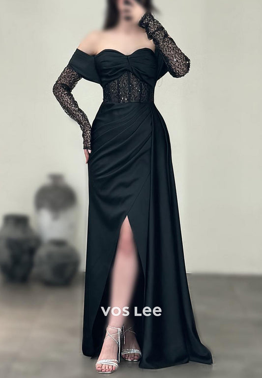 Sexy & Hot Off the Shoulder Pleated Floor-Length Mermaid Evening Dresses wiith High Split