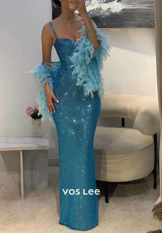 Sparkling & Simple Spaghetti Straps Sweetheart Floor-Length Mermaid Evening Dresses