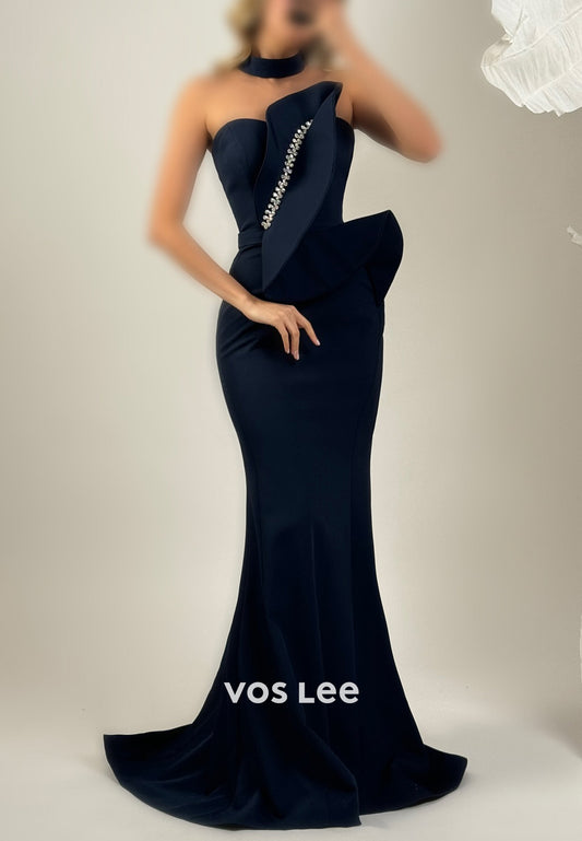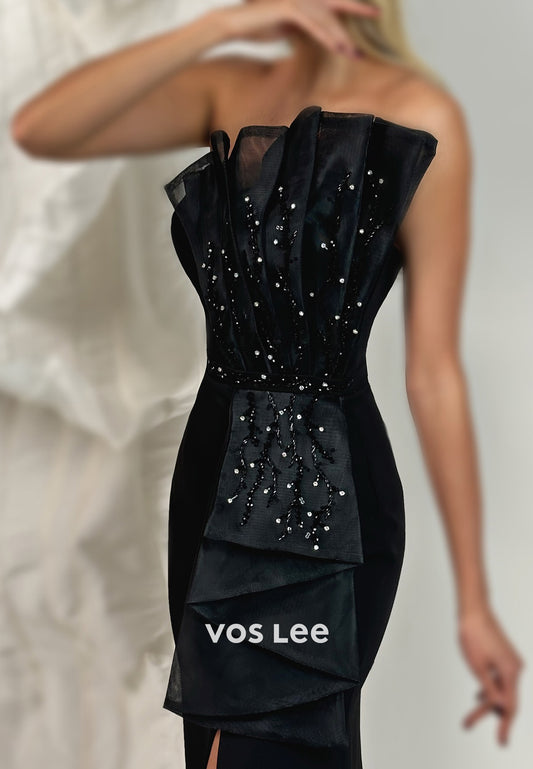 Simple & Classic Strapless Rhinestone Pleated Mermaid Evening Dresses with High Spilt