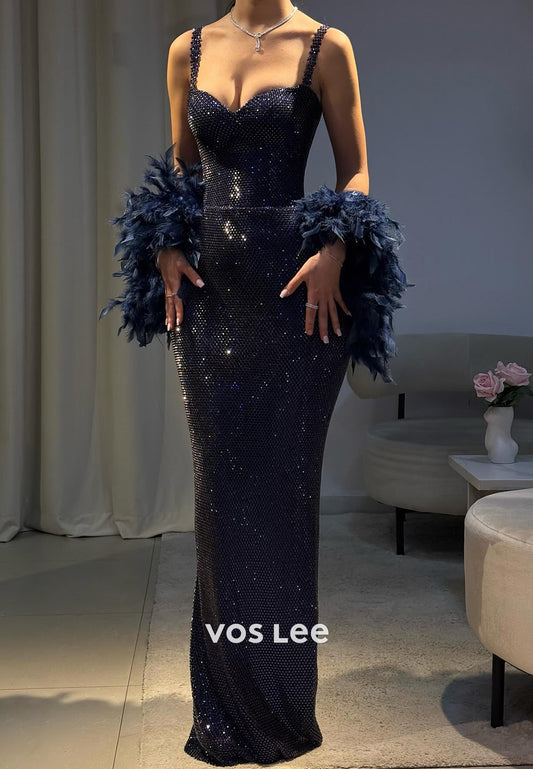 Spaghetti Straps Sweetheart Rhinestone Embellished Floor-Length Mermaid Evening Dresses