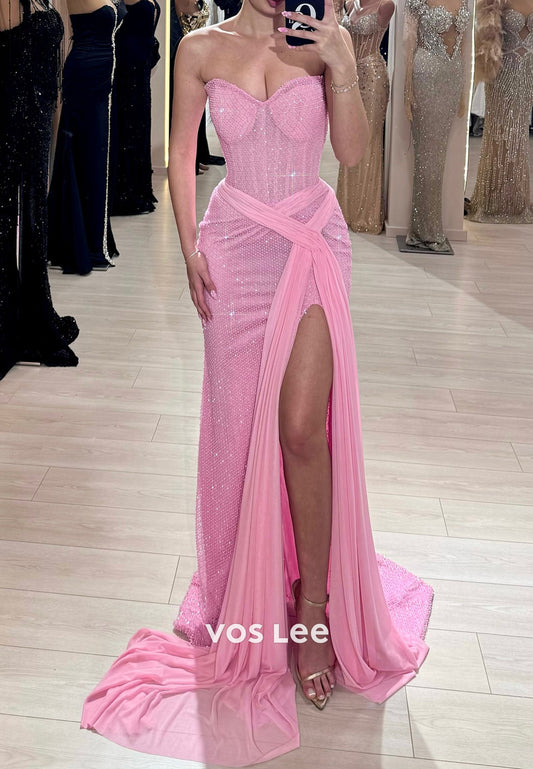Sparkling Sweetheart Rhinestone Floor-Length Mermaid Prom Dresses with High Split