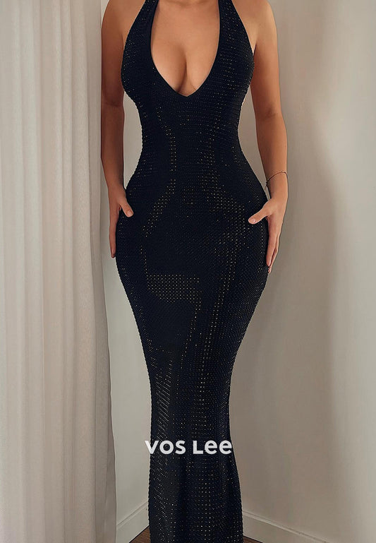 Sexy and Sleek Halter Backless Ankle-Length Long Pleated Mermaid Evening Dresses