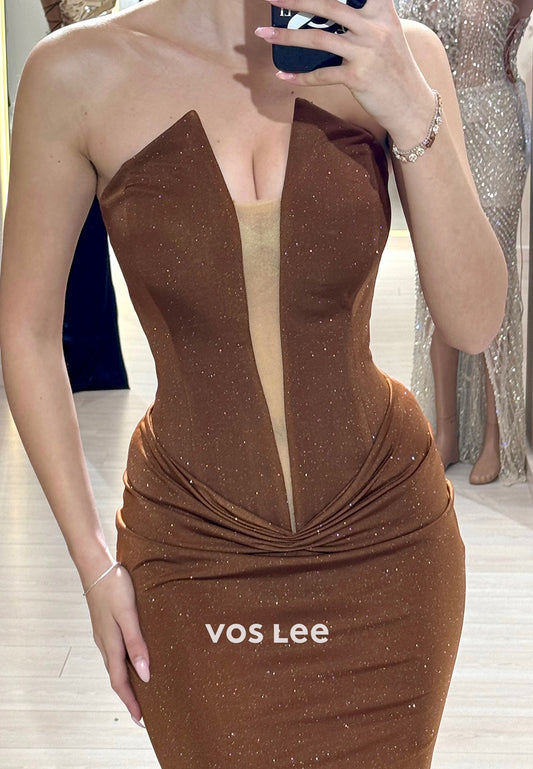 Sexy & Hot Strapless Sequins Embellished Pleated Sheath Evening Dresses with Sweep Train