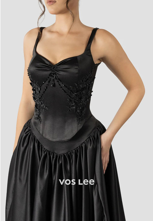 Classic & Simple Spaghetti Straps Sweetheart Flowers Floor-Length Prom Dresses