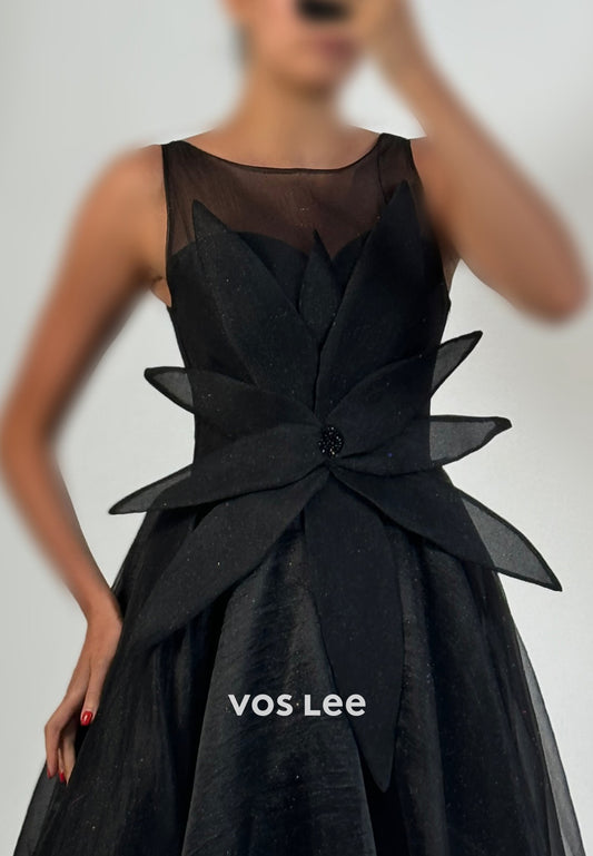 Classic & Timeless A-Line Illusion Neck Flowers Beading Long Prom Dresses with High Split