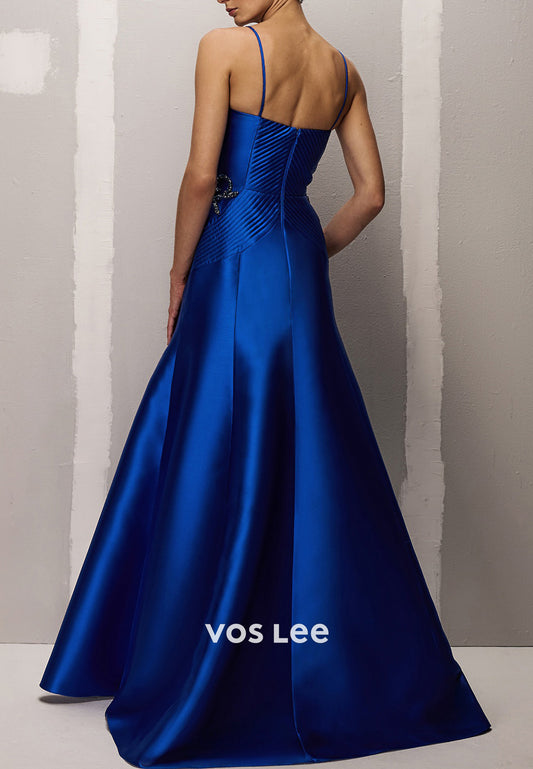 A-Line Spaghetti Straps Sweetheart Beaded Pleated Floor-Length Evening Dresses