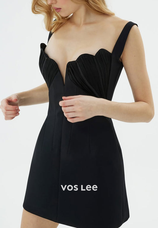 Black Spaghetti Straps Pleated Mini Wedding Guest Dresses Party Dresses