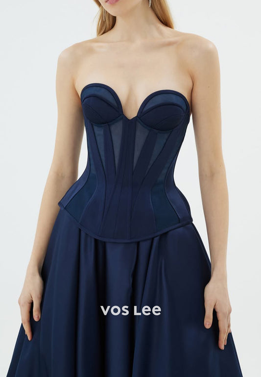 A-Line Strapless Sweetheart High Split Pleated Evening Dresses with Court Train