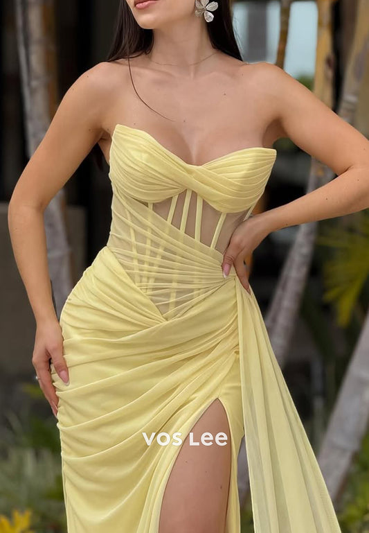 Classic & Timeless Strapless Pleated Floor-Length Split Mermaid Evening Dresses