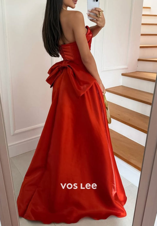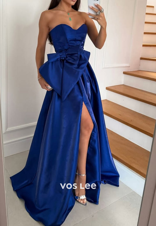 A-Line Strapless Sweetheart Bowknot Pleated Evening Dresses with High Split