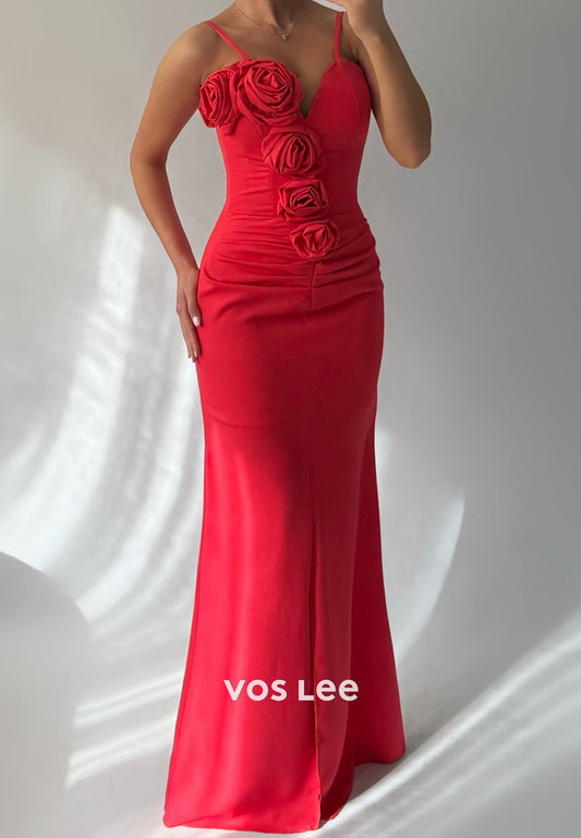 Spaghetti Straps Sweetheart Flowers Pleated Mermaid Evening Dresses Prom Dresses