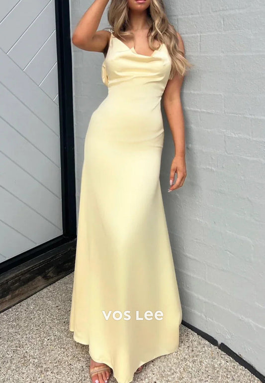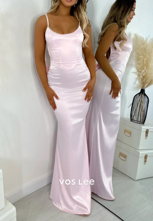 Spaghetti Straps Scoop Bowknot Pleated Floor-Length Mermaid Prom Dresses