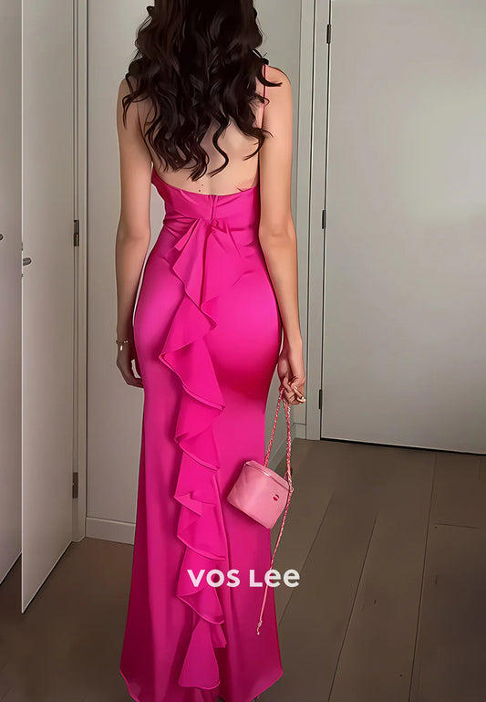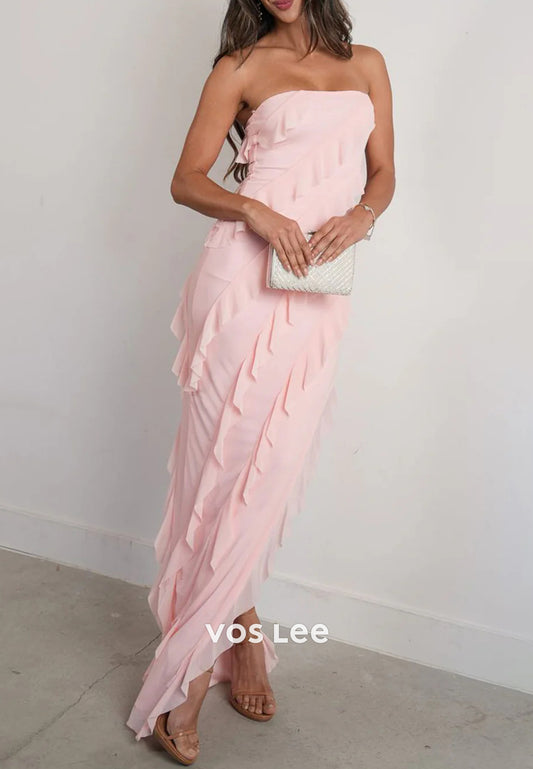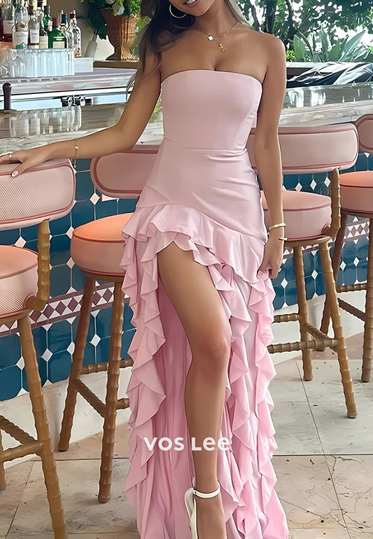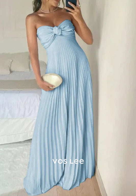 Elegant & Luxurious Strapless Pleated Floor-Length Prom Dresses with Side Split