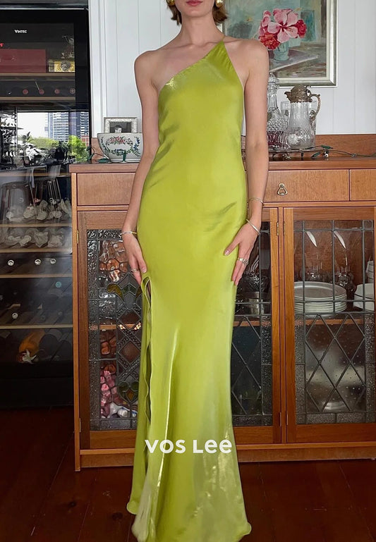 Simple & Classic One Shoulder Floor-Length Sheath Prom Dresses with Side Split