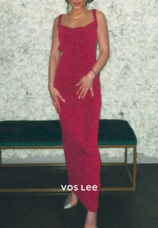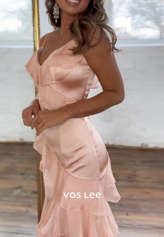 Simple &Classic Spaghetti Straps Ankle-Length Mermaid Prom Dresses with High Split