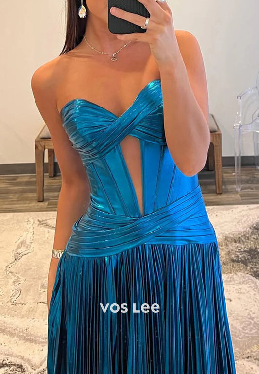 Elegant & Luxurious A-Line Sweetheart Strapless Pleated Prom Dresses with High Split