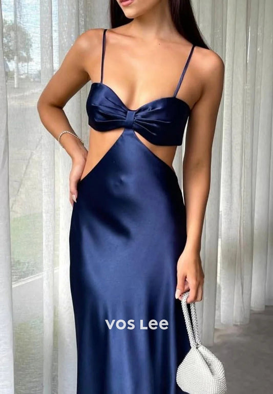 Gorgeous & Charming A-Line Spaghetti Straps V Neck Bowknot Pleated Prom Dresses