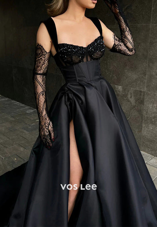 Classic & Timeless A-Line Sweetheart High Split Evening Dresses with Court Train